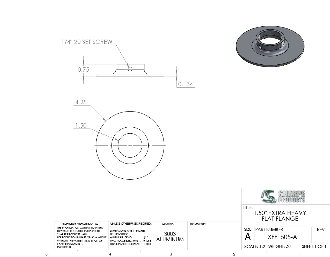 XTRA HVY FLAT FLANGE, 1 1/2 O.D. W/ SET SCREW, ALUM 3003