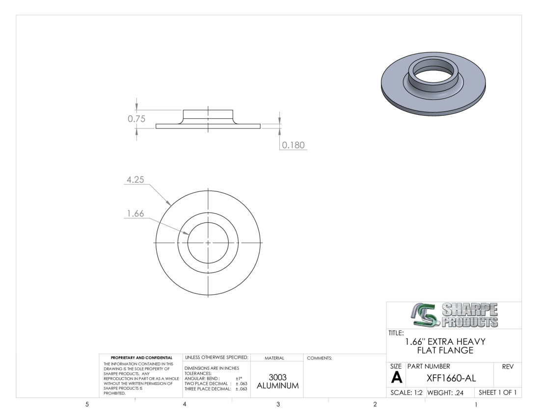 XTRA HVY FLAT FLANGE, 1 1/4 PIPE (1.66 OD) PLAIN, ALUM
