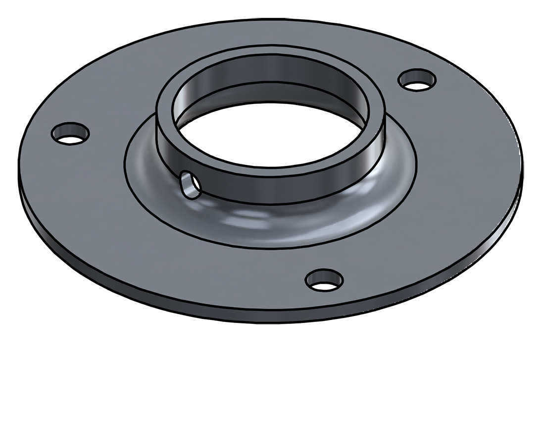 XTRA HVY FLAT FLANGE, 1 1/4 PIPE (1.66 O.D.) W/ (3) HOLES & SET SCREW, ALUM 3003