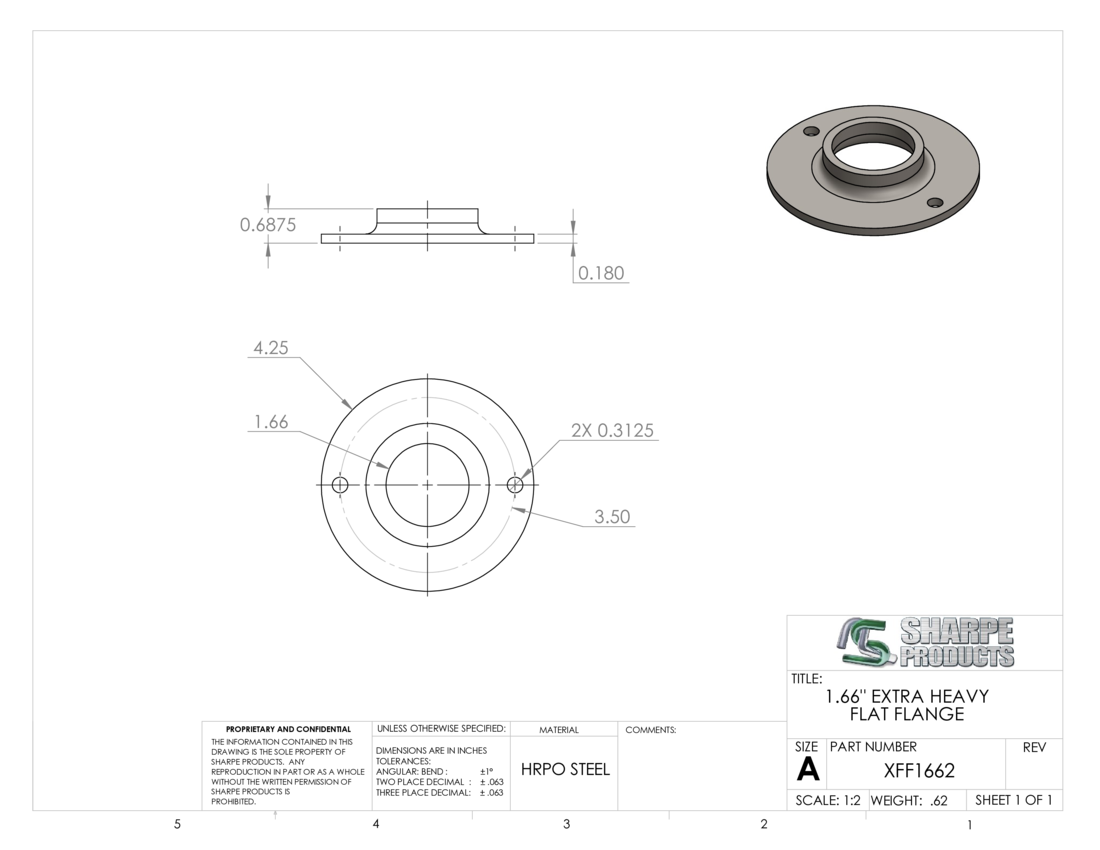 XTRA HVY FLAT FLANGE, 1 1/4 PIPE (1.66 O.D.) W/ (2) HOLES , STEEL