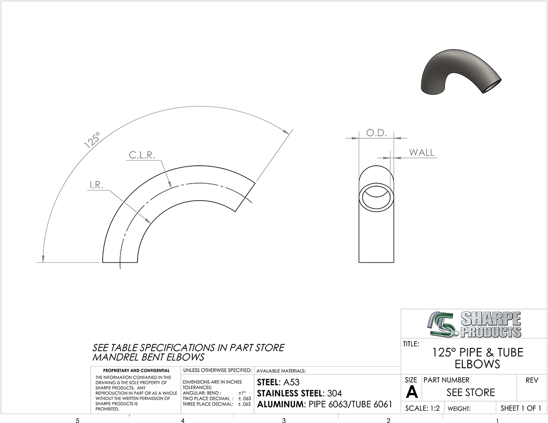 STEEL 1" PIPE 125° ELBOW 6 C.L.R.